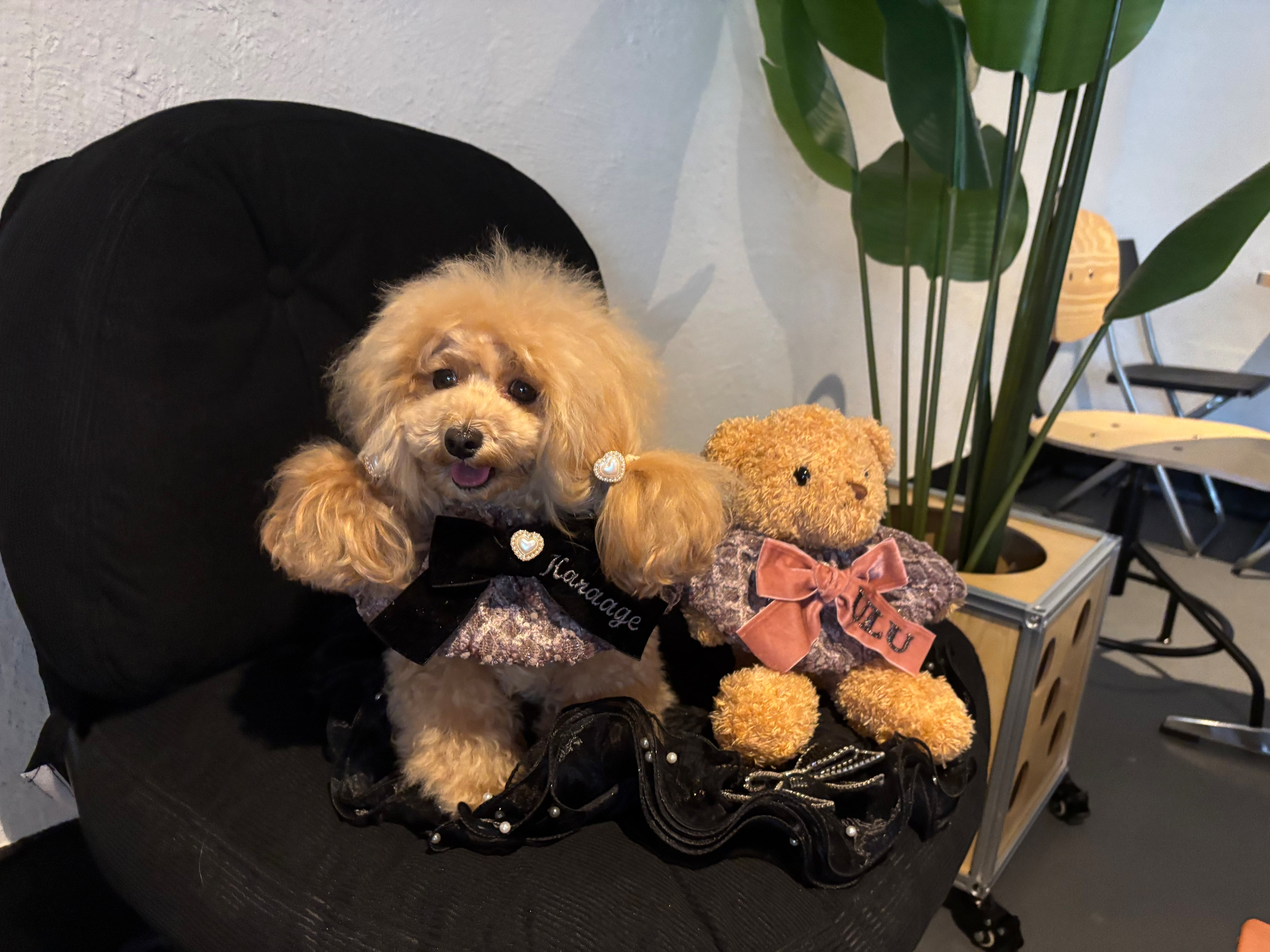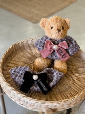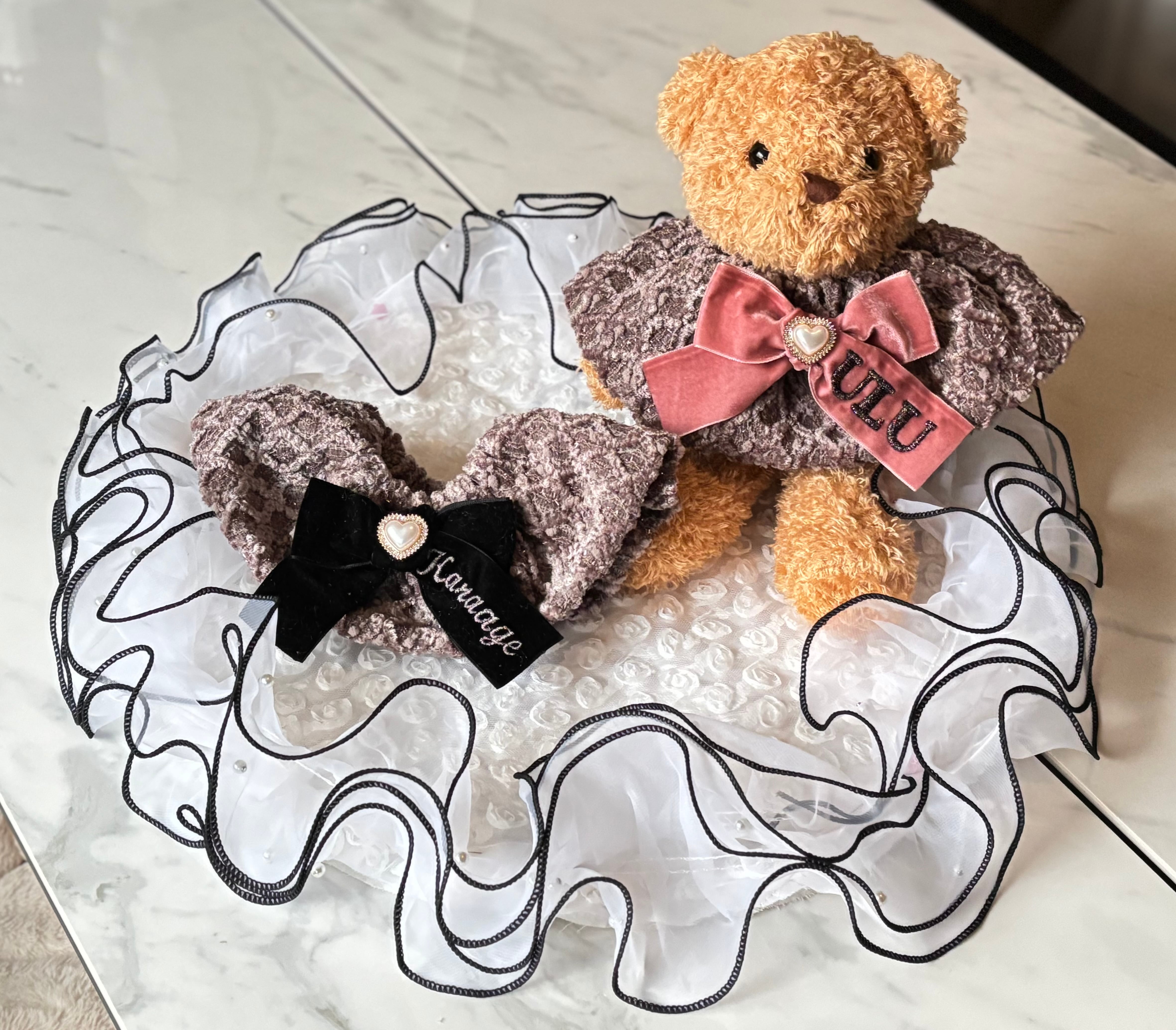 取り外しできるリボン付ケープの新作はラメ感のあるブラウンニット生地✖️ベロアリボン♡