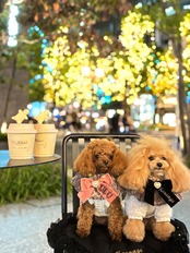 リボンへのお名前刺繍は、オプションにて有無をお選びいただけます。その際の刺繍糸とフォントは複数種類ご用意しております♧(画像のピンクベロアリボンは、黒ミックスラメ糸使用、フォント④、ブラックベロアリボンは白ミックスラメ糸使用、全 フォント⑤)刺繍の色とフォントは11.12.13枚目の画像をご参照頂き、①〜⑤の番号選択と色の選択をお願い致します。