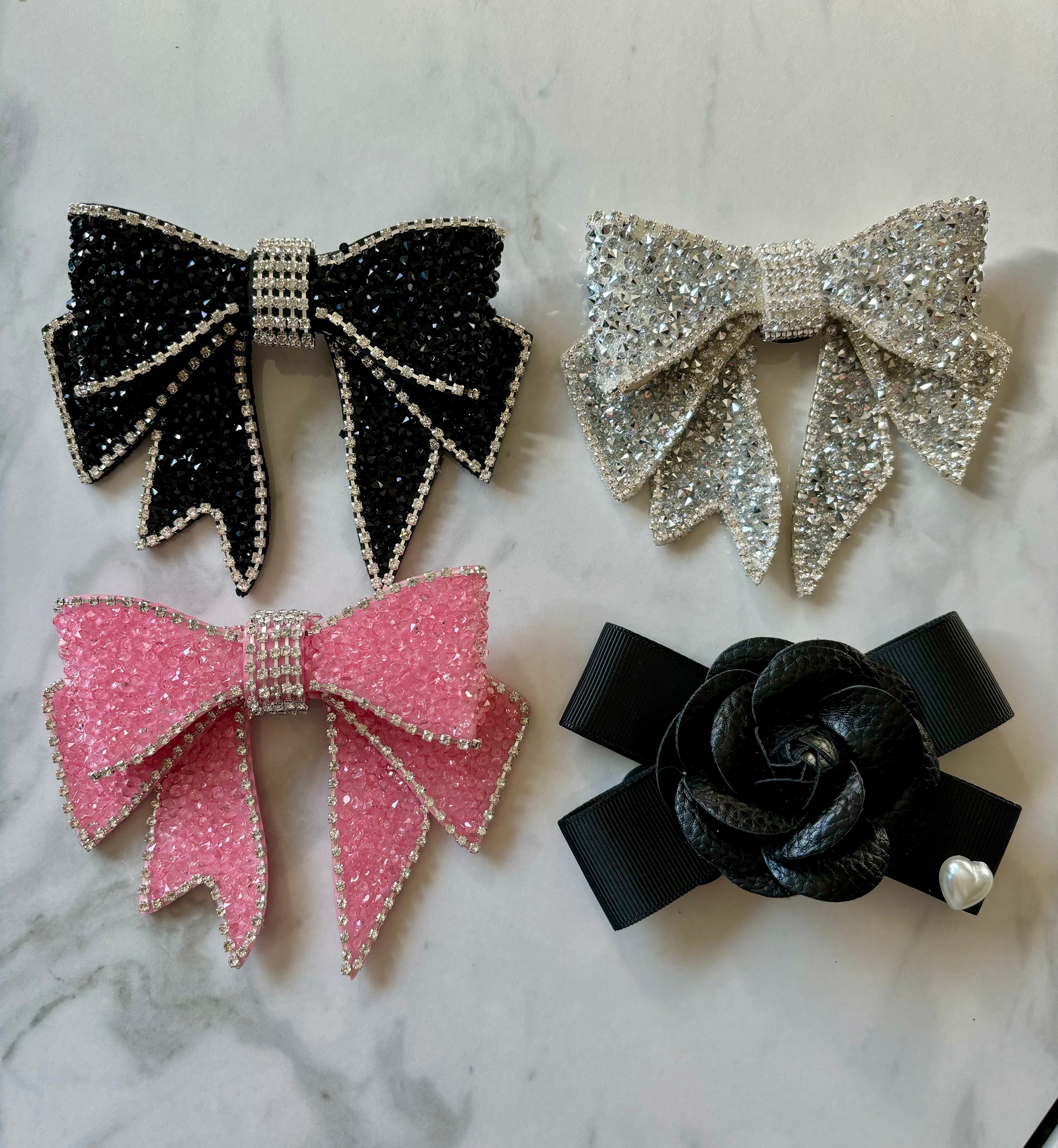 オプションとなりますが、折りたたみ時に便利なビジュー付きゴムベルトや、安全ピンで取り外し可能なキラキラビジューリボンをお選びいただけます♧(7.8枚目画像参照)