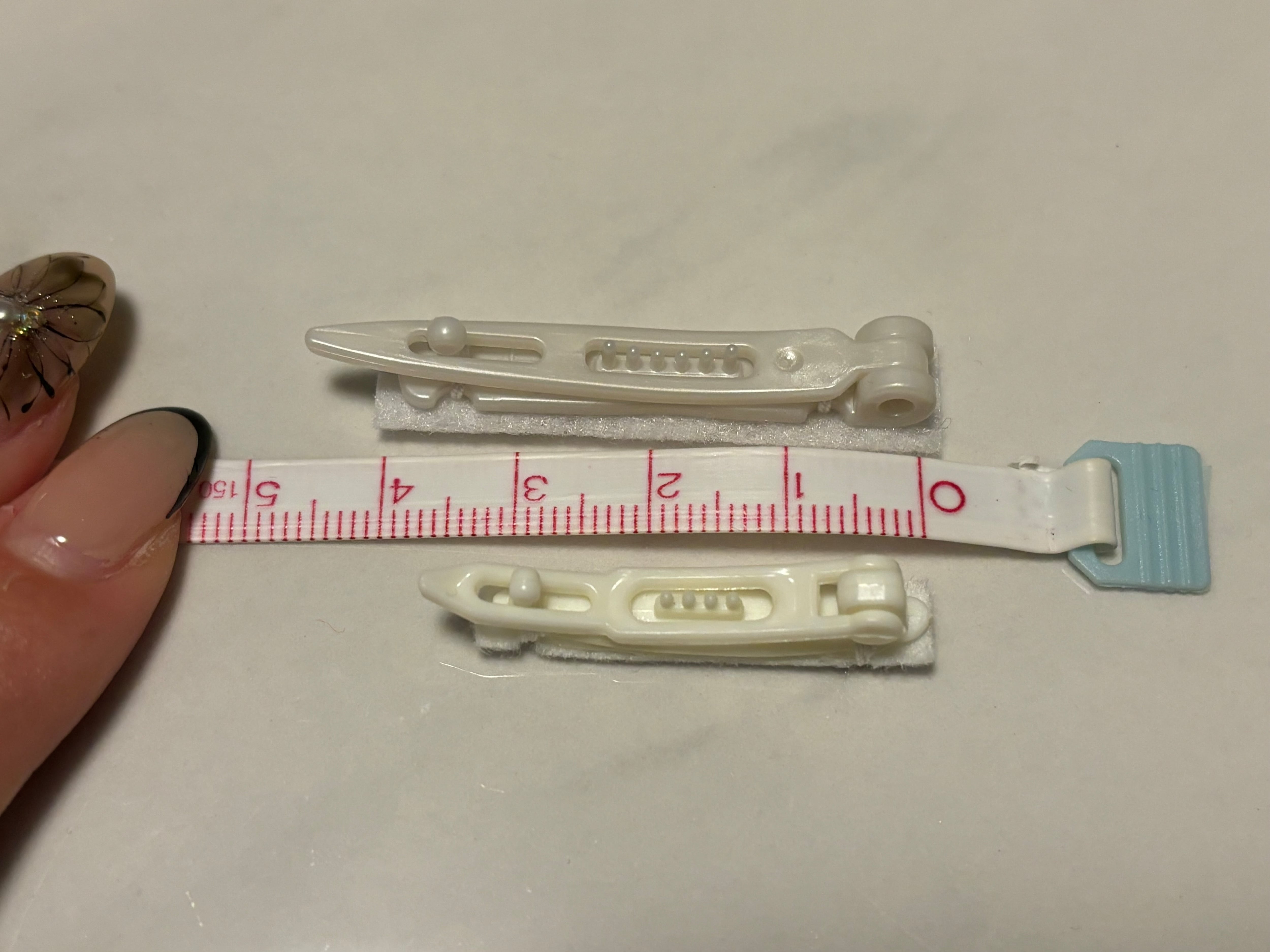 ノーマルのバレッタは、価格を下げるために、小さめで硬めの素材のため、少し付け外しがしにくくなっております。